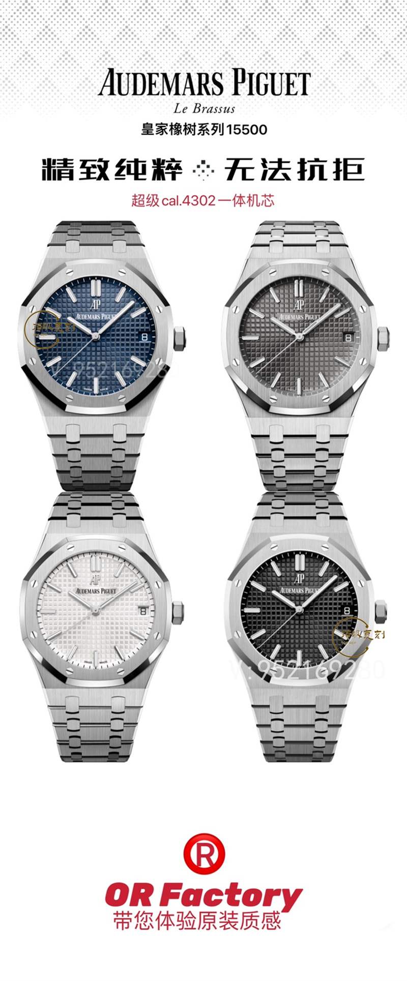 大家好,我是zslhs小編,2023年初,OR廠全面發(fā)布了AP系列的新品,全系列發(fā)布了AP15500、15400、15510三個系列共計13款腕表,后續(xù)會根據(jù)市場需求再拓展,今天我們主要了解的是OR廠的AP15500,也是目前主力男士三大針鋼款腕表。作為鋼王,正品一直處于供不應求的狀態(tài),二級市場也是超越公價的存在,兩年前15900的公價,現(xiàn)在18900經典藍盤,這只是公價的溢價,還有二級市場的提價更嚴重,去年達到了50萬以上,這個主要還是看成色。