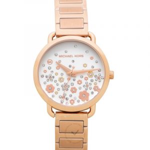 Michael Kors手表一向以時尚而優雅的設計見著,深受現代女性歡迎,其相宜價格讓女士更容易視之為時裝配飾的一部分,出席不同場合可配襯不同的Michael Kors。如果有天妳選擇了比較花俏的穿搭,但又始終擺脫不了對金表的迷戀的話,此款以玫瑰金為主調的精鋼腕表將會是妳的心頭好。32mm圓形表殼置上白色表盤,上面滿布閃石及花卉圖案,俏麗之余不失貴氣,尤其切合隨性、輕奢的穿搭。