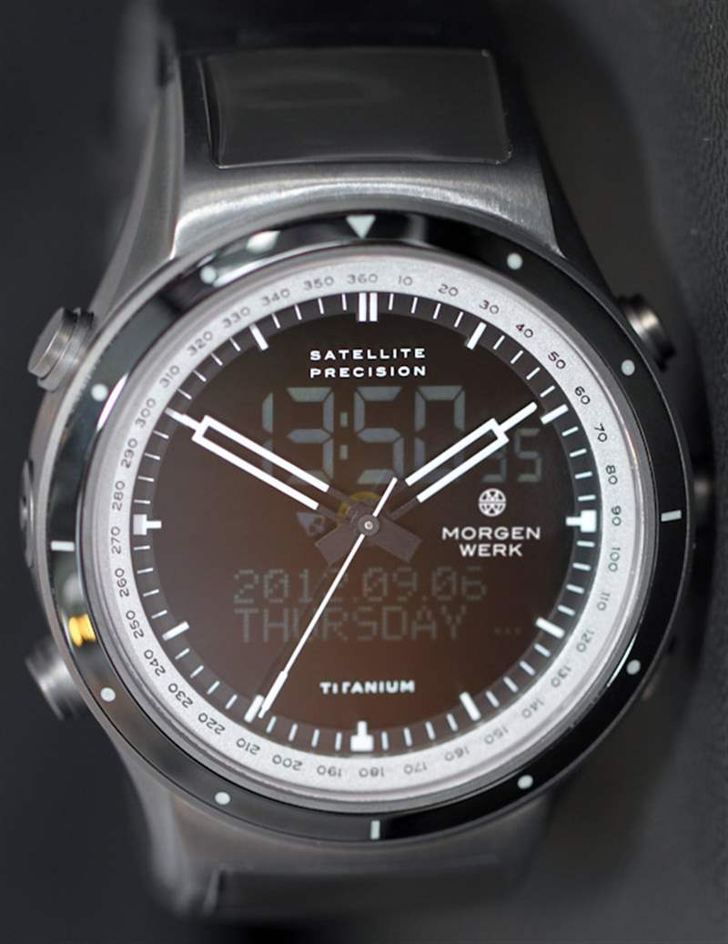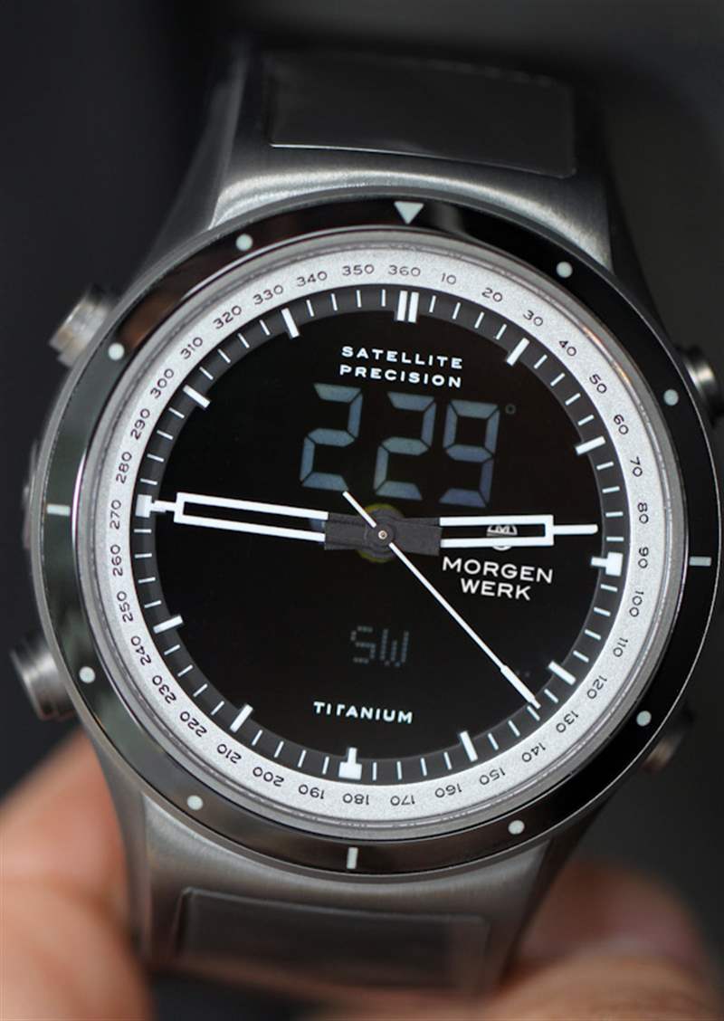 有了 Morgenwerk Satellite Precision M3 模型,事情開始變得更加有趣。這些是模擬/數字手表,在模擬表盤后面包含一個負 LCD 面板(暗屏上的指示燈)。這就是 Morgenwerk 在功能方面與卡西歐、天梭和百年靈等品牌真正競爭的地方。Mark 3 手表包含額外的傳感器,還包括指南針、溫度計、氣壓計和高度計功能。您將結合使用指針和數字顯示屏來讀取所有這些信息。M3 還具有完整的日歷(具有吸引人的顯示屏)、計時碼表、鬧鐘和天氣預報工具。此外,各種模型和信息顯示非常吸引人,而且操作起來相當人性化。