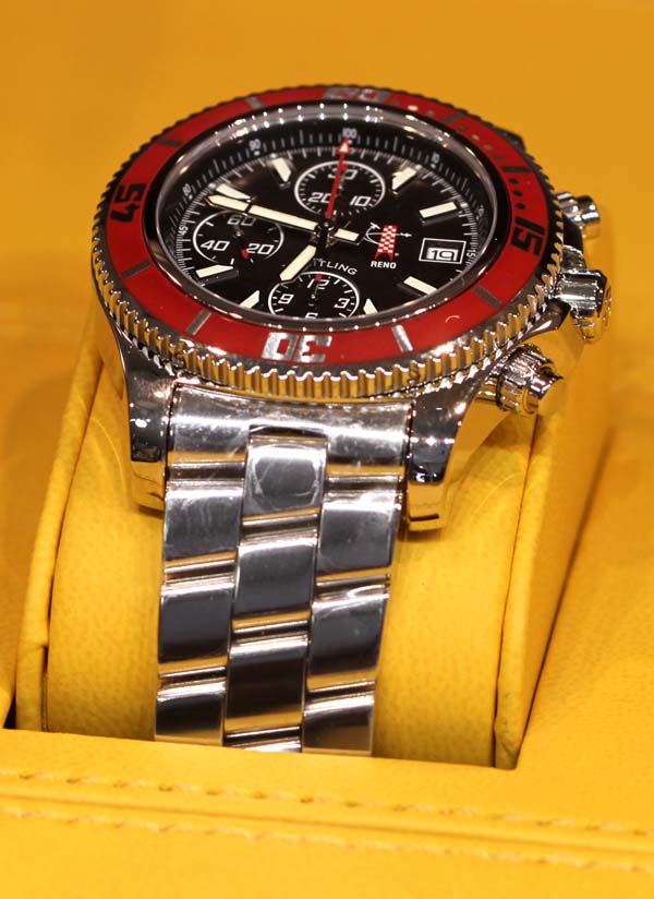 2012 年航空活動的限量版腕表作為潛水表有點諷刺。這是百年靈 Superocean Chronograph II 44mm Limited Edition Reno National Championship Air Race & Show 2012 時計。此型號的特別之處在于鑲有紅色硫化橡膠表圈,并在表盤上貼上 Reno air races 標志。手表的海洋主題似乎并沒有讓任何買家望而卻步。未售出的作品將分發(fā)給少數(shù)幾個百年靈經(jīng)銷商。