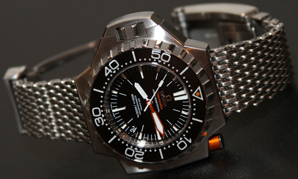 雖然您可以在白色、橙色或黑色橡膠表帶上找到歐米茄海馬 Ploprof,但很難忽視米蘭(網眼)金屬“防鯊魚”表鏈。雖然從美學角度來看,這款手鏈并不適合所有人,但它是同類手鏈中最好的一款。首先,金屬網做工非常好,不會有拉扯手臂毛發的傾向。其次,歐米茄將其設計為具有真正的可拆卸鏈節——這使得調整起來非常簡單。另外,鏈節很難看清,所以它看起來像一個齊平的手鏈。與市面上的其他手鏈相比,這款網狀金屬手鏈的質地、質量和手感都非常好。