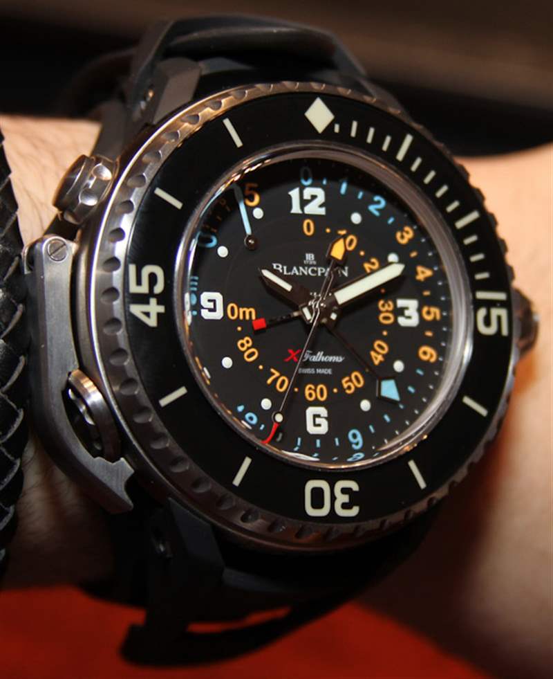 這款寶珀X Fathoms 手表是我非常興奮的一塊手表(終于!)。它不僅體積大而且非常復(fù)雜,而且寶珀聲稱它配備了有史以來(lái)為手表制造的最復(fù)雜的橡膠表帶。僅此一點(diǎn)就讓我很好奇。X噚是“噚”系列的主題旗艦腕表。這始于復(fù)古的 50 噚,它導(dǎo)致了今天的 50 噚,以及 500 噚手表。鑒于我自己的品味,它們中的每一個(gè)都代表了寶珀當(dāng)前系列中最令人向往的作品。我只是喜歡一個(gè)漂亮的潛水員!X Fathoms 不是最深的“Fathoms”潛水表,但卻是最復(fù)雜的。寶珀 (Blancpain) 提供了其 50 和 500 噚手表的基本自動(dòng)、GMT 和計(jì)時(shí)碼表版本。X Fathoms 擁有非常精密的機(jī)械深度計(jì)系統(tǒng)。