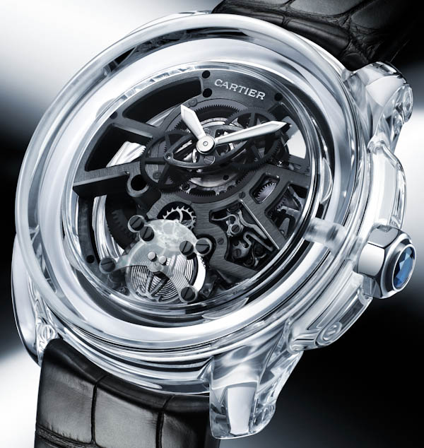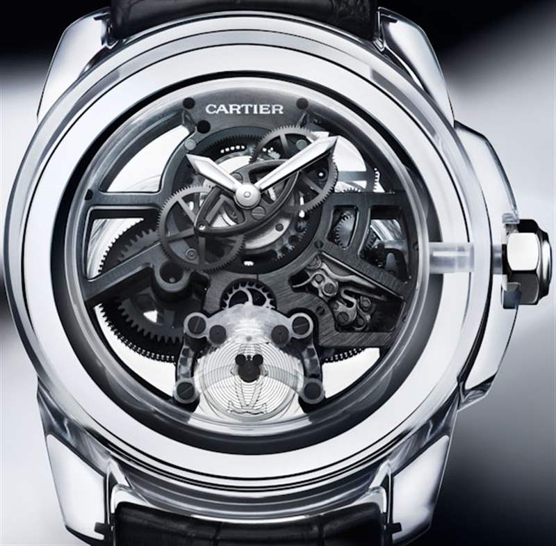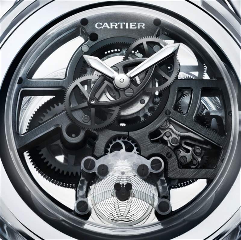 外殼沒有將其固定在一起的螺釘。事實上,它也沒有真正的空氣。這是我聽說的第一款具有真空密封內腔的手表。手表的底蓋被真空吸到表殼的其余部分——所以不要試圖撬開它。手表中 99.5% 的無空氣空間減少了空氣引起的摩擦——主要是通過擒縱機構。根據(jù)卡地亞 (Cartier) 的說法,從表殼中去除空氣幾乎可以完全去除因空氣摩擦而損失的能量,從而顯著提高機芯的能量效率。很酷。盡管當您考慮其中的含義時,并發(fā)癥會增加。這些都是小事,例如如何密封表殼、如何調整機芯以及無空氣空間如何影響機芯。簡而言之,卡地亞不得不為一些東西申請專利,去除機芯上的所有潤滑劑,并使用一些幾乎無摩擦且不需要油的奇特新材料。比標準硅更先進的東西。