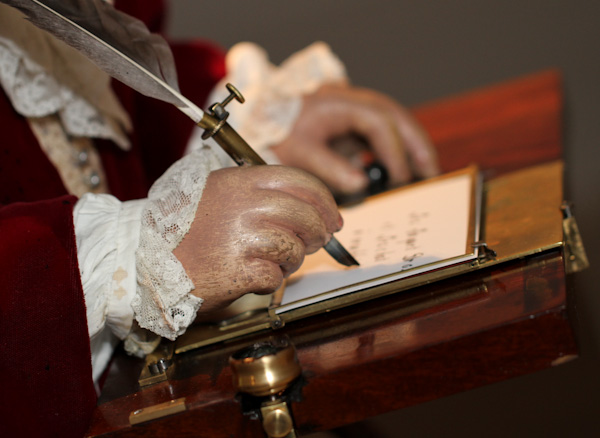 三個主要的機(jī)器人風(fēng)格自動機(jī)中的第一個是作家,我相信它是在 1774 年創(chuàng)建的。然后是繪圖員(類似于作家,但會畫圖)和鋼琴家(女性風(fēng)格的機(jī)器人,會彈奏管風(fēng)琴風(fēng)格的鋼琴)。作家也是啟發(fā)馬丁斯科塞斯電影“雨果”中“角色”原則的自動機(jī)。我聽說雨果團(tuán)隊(duì)在制作電影時甚至不知道作家還存在。