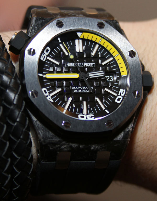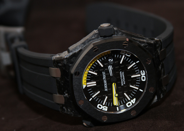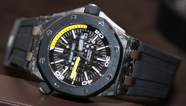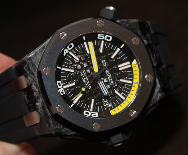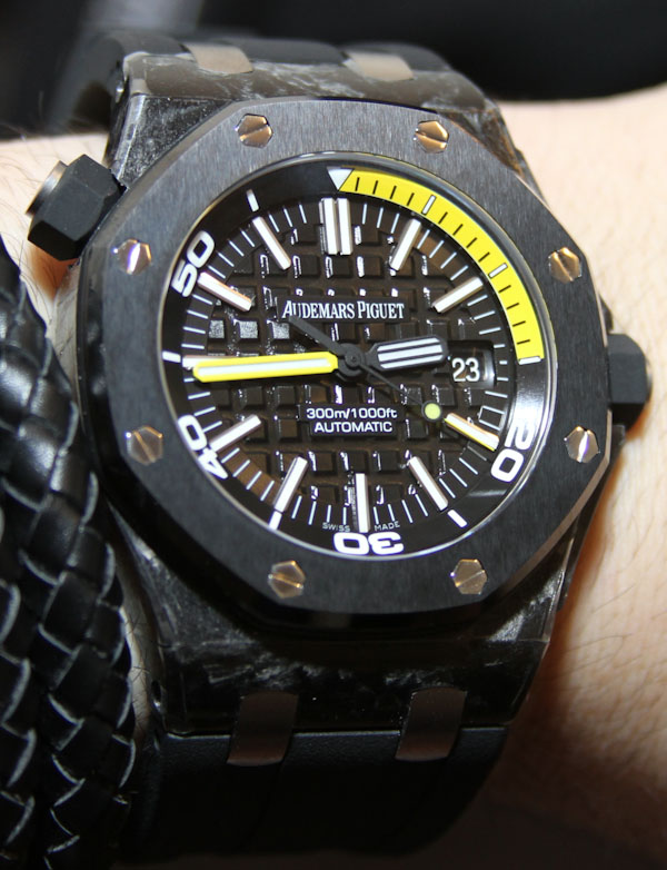在鍛造碳纖維中,Royal Oak Diver 略有變化并且價格上漲。更多經驗豐富的 AP 粉絲肯定會喜歡這個 – 即使除了鋼制模型。愛彼以黑色表盤搭配分針等黃色元素,提升了這款腕表的運動主題。這種外觀讓人回想起其中一款最初的鍛造碳手表——皇家橡樹離岸型鍛造碳計時碼表,許多人將其昵稱為大黃蜂。您可以看到這兩款手表如何存在于同一個家族中。