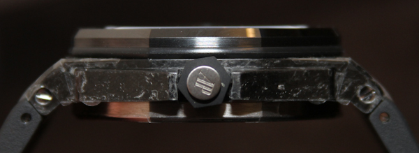 雖然表盤的色調在鍛造碳模型上感覺更暗,但仍然非常清晰易讀。表殼的深色調具有足夠的質感和飾面差異,使手表看起來仍然很有趣——甚至可能比鋼殼版本更有趣。當然,表盤仍然有由位于 10 點鐘位置的表冠控制的內部旋轉表圈。