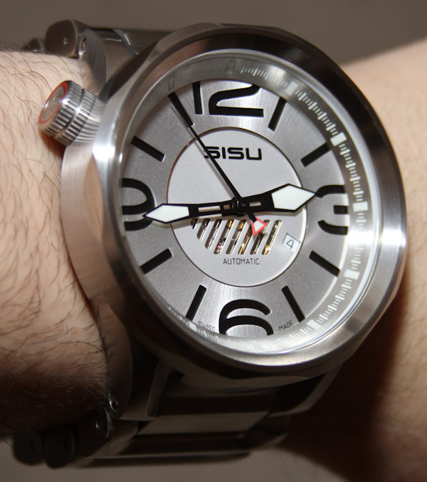 SISU 最初的概念是為運(yùn)動員和其他體型較大的活躍人士生產(chǎn)手表。他們有一張有趣的照片,其中一個魁梧的家伙一只手戴著勞力士,另一只手戴著 SISU——只是為了比較尺寸。顯然,較大的 SISU 更適合他的大手腕,而勞力士則顯得比較嬌小。佩戴大型手表有一定的樂趣——但樂趣全在于設(shè)計(jì)。一塊大手表只有在舒適的時(shí)候才有意義。