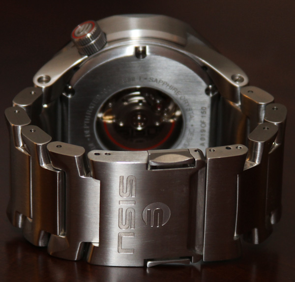 手鐲配有按鈕式展開式表扣,佩戴起來非常舒適。雖然鏈接很大,但有一個半鏈接可以幫助適當(dāng)調(diào)整大小。除了金屬表鏈,SISU 還提供相當(dāng)不錯的橡膠表帶。如果您不能很好地佩戴手鏈,這些方法會有所幫助,并且顯然會使手表更輕。較大的手表通常可以從橡膠表帶中獲益,因?yàn)榛谀Σ恋馁N合有助于表殼移動。