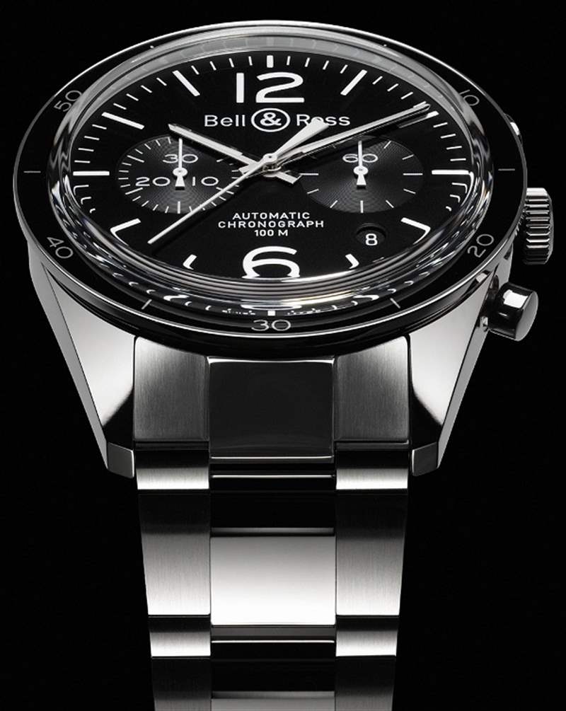 表圈是根據 1950 年代的潛水表表圈設計的。通常像這樣的手表會有測速儀式表圈,我很高興它沒有。不幸的是,潛水式表圈僅用于外觀并提供另一個小時/分鐘刻度。它不旋轉。這沒什么大不了的,但在我看來,有一個移動的邊框會很棒。表盤的易讀性非常好,指針的長度也恰到好處。腕表內部搭載瑞士ETA 2894自動計時機芯。Bell & Ross 保留了日期,但去掉了 12 小時計時盤,使其成為計時長達 30 分鐘的雙孔計時碼表。這是一個非常干凈和有吸引力的表盤,對我來說黑色看起來很完美(類似手表的其他非“運動”版本也有銀色表盤)。手表的背面是一個展覽底蓋窗口。