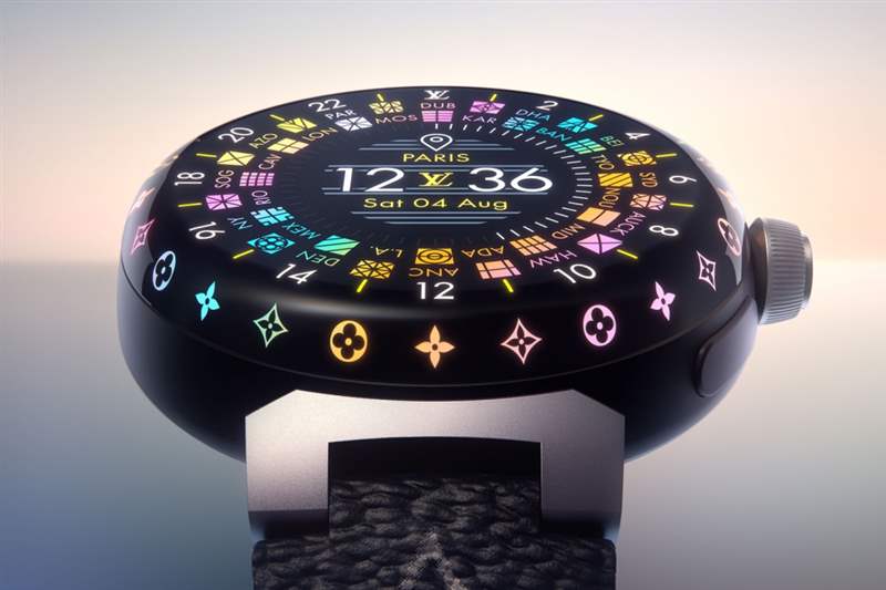 表殼邊緣最搶眼的設計,正是以LV Monogram圖案組成的表圈,每一顆圖案背后都有一盞LED燈,總共24盞,每當腕表啟動或收到通知,LED燈便會亮起,形成充滿動感的色彩效果,在黑暗中閃爍靈動!
