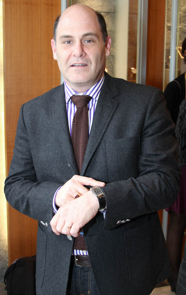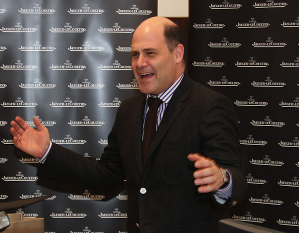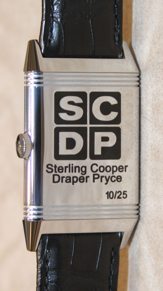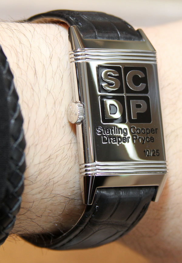 說到道具,我正在和維納交談,因為他戴著一塊手表,從某種意義上說,它是現實生活中的《廣告狂人》道具。積家(Jaeger-LeCoultre)與該劇合作制作了 25 枚 Reverso 翻轉腕表的限量版,意在呈現真實故事中的景象。Mad for Reverso 以 Grande Reverso Ultra-Thin 1931 Tribute 手表為基礎,在底蓋上刻有 Sterling Cooper Draper Pryce (SCDP) 標志的特殊雕刻(當然可以翻過來)。我在這里首次亮相 Jaeger-LeCoultre Mad about Reverso 腕表。我認為手表的技術名稱是 Jaeger-LeCoultre Grande Reverso Ultra-Thin Tribute to Mad Men “Mad for Reverso” 手表。有一些不錯的瑣事給你。