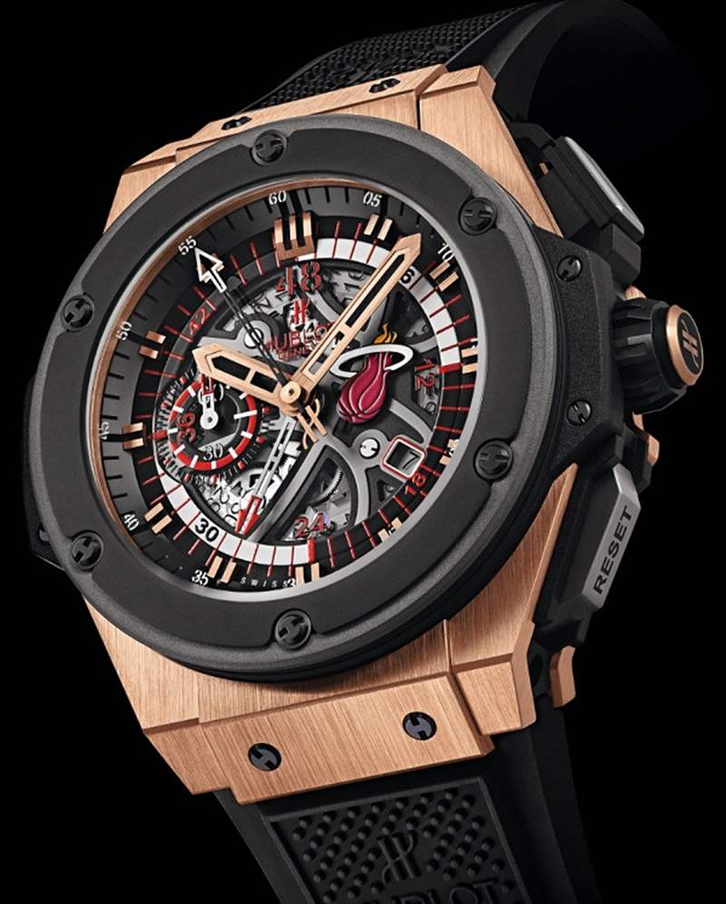 我在一篇有趣的文章中談到了 Hublot 和邁阿密熱火隊。他們首先為邁阿密熱火隊球員德維恩韋德制作了限量版手表,然后宣布他們將成為邁阿密熱火隊的官方手表制造商和計時器,這是第一款邁阿密熱火隊手表。它被稱為 Hublot King Power Miami Heat Chronograph,將限量發行 200 枚。廣告留言廣告信息結束