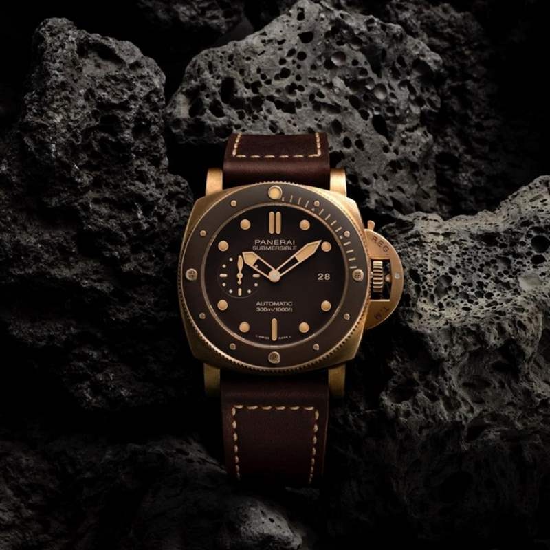 另一枚銅表Submersible PAM968亦是出現在較硬朗大只的Submersible系列,直徑達47mm,戴上手極有份量;啡色表圈襯上同色系表面,感覺又vintage 好有味道。