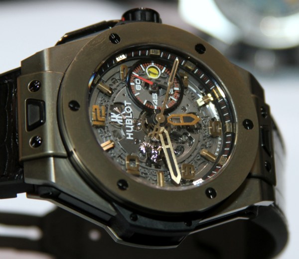 首先,Hublot 將提供 Big Bang Ferrari 鈦金屬或 Magic Gold 手表。我在這里更詳細地介紹了后一種材料。看到 Big Bang 法拉利的 Magic Gold 版本是我第一次親自檢查材料。宇舶 (Hublot) 剛剛在巴塞爾表展首次亮相時勉強及時完成表殼。陶瓷金混合材料很有趣。它當然是光滑的,但比普通黃金更暗。它也有輕微的灰綠色調(diào)。我有一種感覺 Hublot 會稍微調(diào)整顏色。即使他們不這樣做,這也是他們以前從未提供過的新材料和顏色。它的耐刮擦性也是黃金的兩倍多。異國情調(diào)的材料和 Magic Gold 等新材料是鐘表內(nèi)含物,是 Biver 產(chǎn)品戰(zhàn)略的基石。廣告留言廣告信息結(jié)束