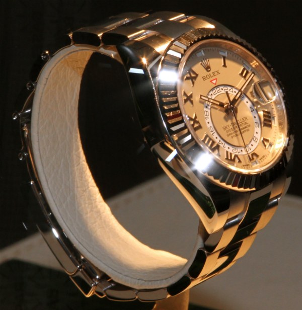 勞力士 Sky-Dweller 是手表愛好者的混合包。一方面,它提供了一些真正的勞力士創新。新產品系列配備新機芯,以及人們長期以來一直希望從勞力士獲得的功能。另一方面,勞力士 Sky-Dweller 的表盤……至少可以說是一種后天習得的品味。在我看來,美學問題是大面積外露的不對稱 GMT 圓盤。它在勞力士手表表盤上看起來放錯了位置。功能?也許。性感誘人?一點也不。一只手就足夠了。只需詢問任何 GMT Master。另外,指針有點太短,而且對手表本身來說太鏤空了。Lume 太稀疏,骨架化的手可能比它們的價值更麻煩。