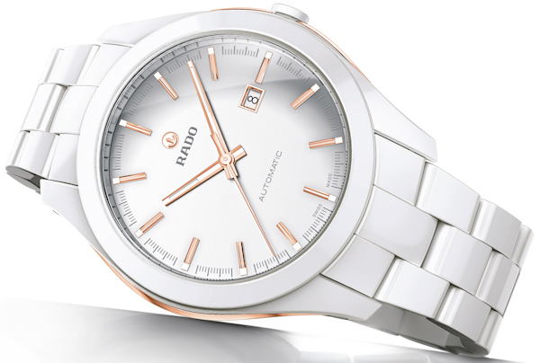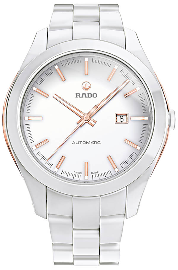 三針和計時碼表的表盤主題相同。20 世紀中葉的指針和時標,您可以在 Rado 過去的作品中找到它們。它們很好地轉化為當今手表中的經典運動手表樣式。對于女性,Rado 為您預覽了一款白色和 PVD ??玫瑰金女款 HyperChrome。這款外觀迷人的作品寬 36 毫米,感覺像是白色和金色的完美結合。我對 HyperChrome 系列的其余部分很好奇。
