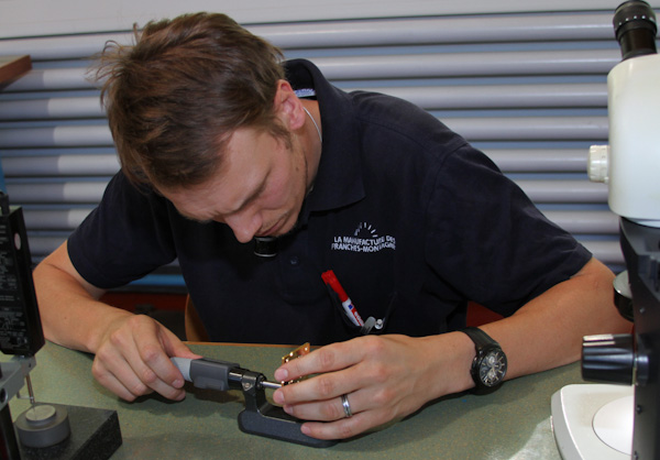 在 Saignelégier 工廠的路上是一個(gè)較小的工廠,它也屬于 Maurice Lacroix。它被稱為L(zhǎng)a Manufacture des Franches-Montagne,這家子公司不僅為 Mauric Lacroix 生產(chǎn)小零件,還為許多其他高端(至極高端)品牌生產(chǎn)小零件。這個(gè)極其復(fù)雜的小地方專門制造需要極高精度的非常復(fù)雜的小零件。使用一系列特殊的 CNC 機(jī)械,許多嚴(yán)肅的品牌依靠 LMDFM 的現(xiàn)代生產(chǎn)能力來(lái)制造他們手表的某些部分,這些部分在內(nèi)部制造起來(lái)太困難和昂貴。隨著該設(shè)施在過(guò)去幾年開業(yè),LMDFM 讓我有機(jī)會(huì)了解鐘表行業(yè)使用的一些最新機(jī)械(包括一些很酷的機(jī)器人),使現(xiàn)代設(shè)計(jì)的手表栩栩如生。廣告留言廣告信息結(jié)束