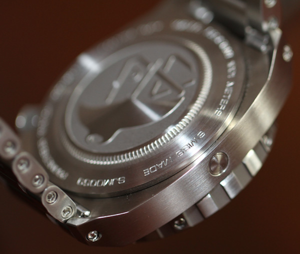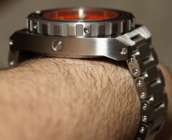 拿起 Manta Ray 的人無(wú)疑會(huì)注意到這款手表令人印象深刻的重量。44.50 毫米寬的大表殼很厚,表耳非常寬。它高高地戴在手腕上,看起來(lái)很像一種樂(lè)器。這些表殼采用拉絲表面和棱角分明的邊緣,看起來(lái)既現(xiàn)代又復(fù)古。大螺絲排列在鋼質(zhì)手鏈的側(cè)面,增添了這款產(chǎn)品的技術(shù)感。這真的不是虛張聲勢(shì)的手表,我喜歡這個(gè)事實(shí)。