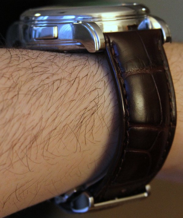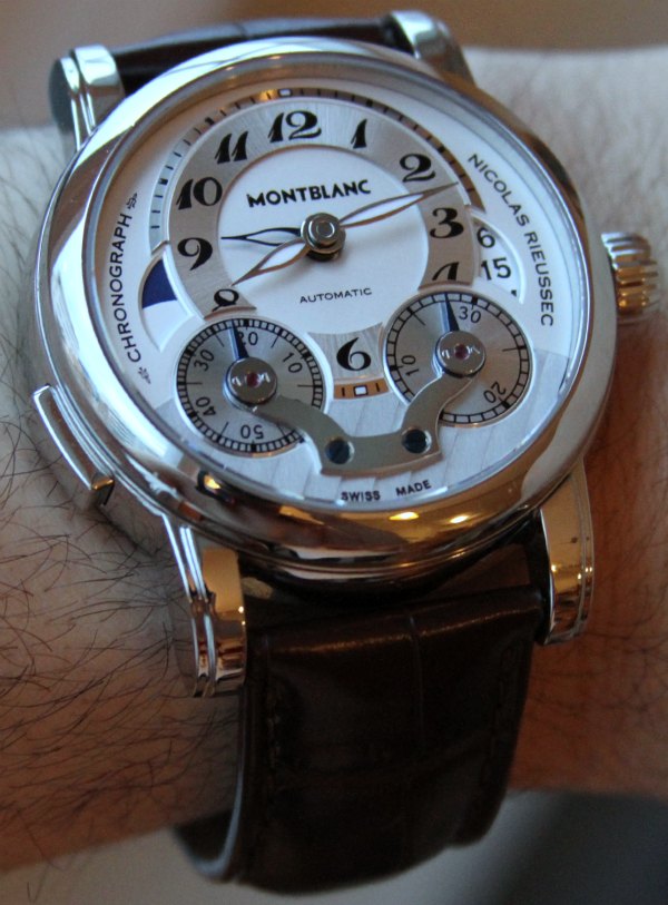 表盤左側有晝/夜顯示,右側有日期輪。對于對稱性,萬寶龍使用類似形狀的窗口,但我不太關心“打開”的日期窗口。由于上下日期部分位于表盤下方,它看起來也不壯觀 – 盡管這實際上有助于將注意力集中在實際日期上。雖然時間表盤兩側的窗口看起來不錯,但我有一種感覺,萬寶龍可能會在未來幾代手表中修改或拋光設計。