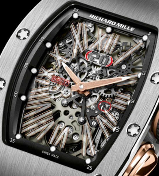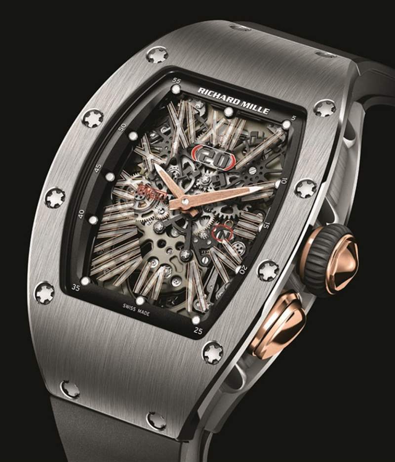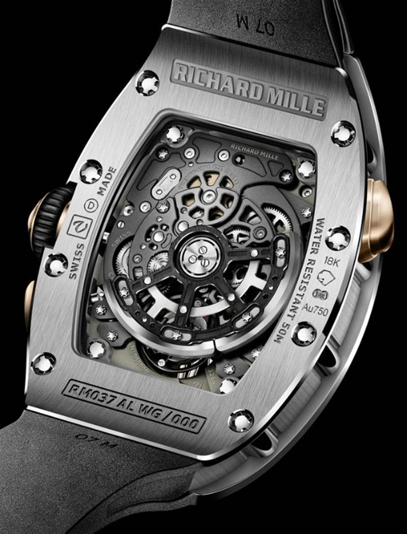與大多數 Richard Mille 手表一樣,這款手表有鈦金、紅金或白金材質。理查德米勒 (Richard Mille) 喜歡展示他們的手表,大多采用工業外觀的鈦金屬,以盡可能展現出最“實用”的光芒。但現實當然是他們的作品是高端產品,客戶喜歡他們的黃金產品。然而有趣的是,即使是鈦金屬表款,表冠和功能選擇按鈕也是 18k 紅金材質。廣告留言廣告信息結束