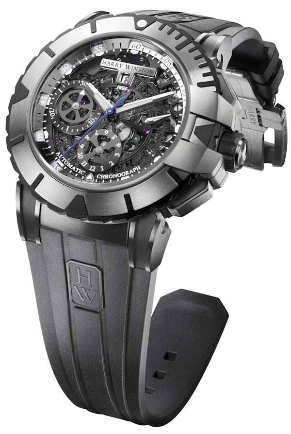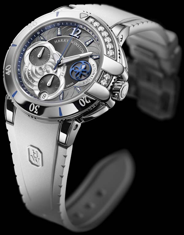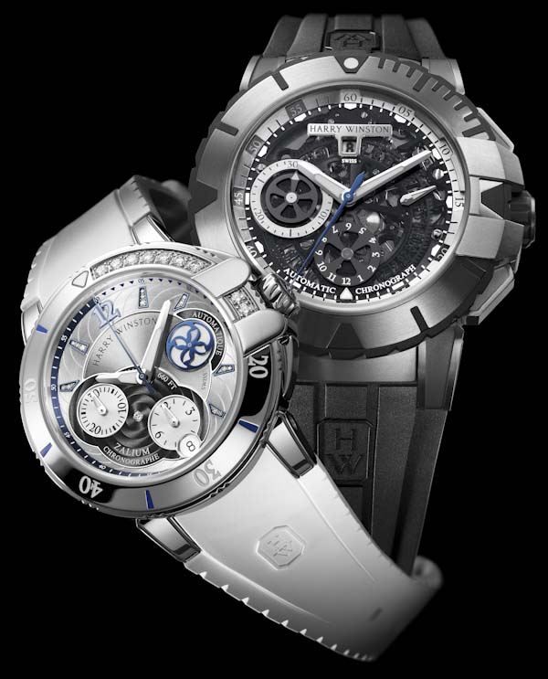 男士款式配有淺色或深色表殼以及計(jì)時(shí)碼表或三指針款式。這些被稱為 Harry Winston Ocean Sport Chronograph 或 Ocean Sport Automatic 手表。它們?cè)诰劽鎾伖獾?Zalium 表殼中寬 44 毫米。根據(jù)海瑞溫斯頓的說法,表殼的某些部分涂有 DLC 涂層。表盤上的藍(lán)寶石水晶表殼防水 200 米。他們看起來有潛水員風(fēng)格的邊框,但邊框似乎不是旋轉(zhuǎn)的類型。