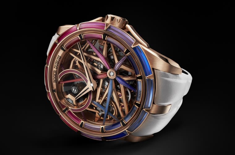 ROGER DUBUIS羅杰杜彼近期推出的部分新作會讓人有目眩神迷的感覺,這股視覺魅力一路延續(xù)進(jìn)品牌最新出品的Excalibur Blacklight Spin-Stone Monobalancier王者系列夜光單擺輪手表,其秉承Blacklight的設(shè)計概念,并融入嶄新的尖晶石裝飾,使得外觀原本就富有繽紛視覺效果的這款手表,在暗處還能發(fā)散出七彩螢光,讓佩戴者與旁人都很難將注意力從手表上移開。
