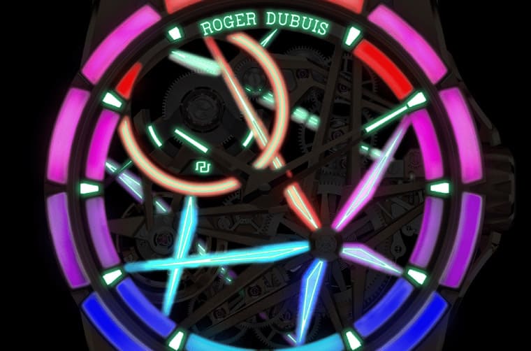 ▲Excalibur Blacklight Spin-Stone Monobalancier于熟悉的外觀中結(jié)合尖晶石裝飾與夜光效果,持續(xù)發(fā)揮搶眼的視覺效果。