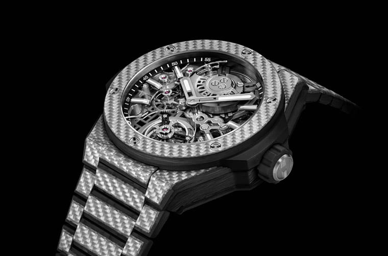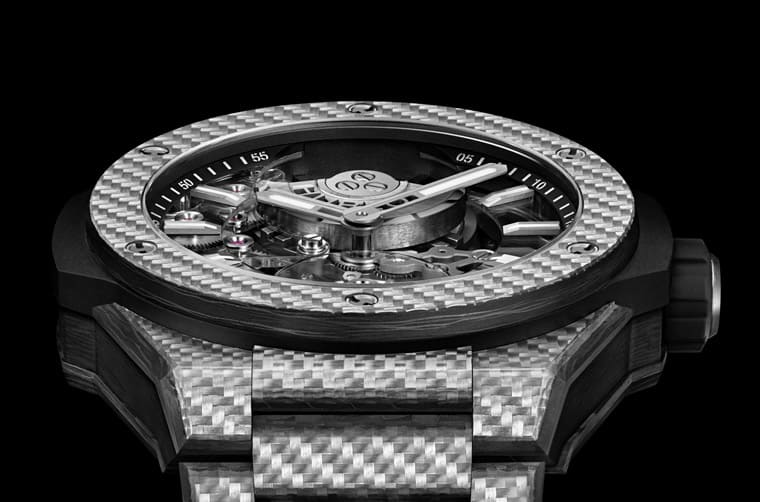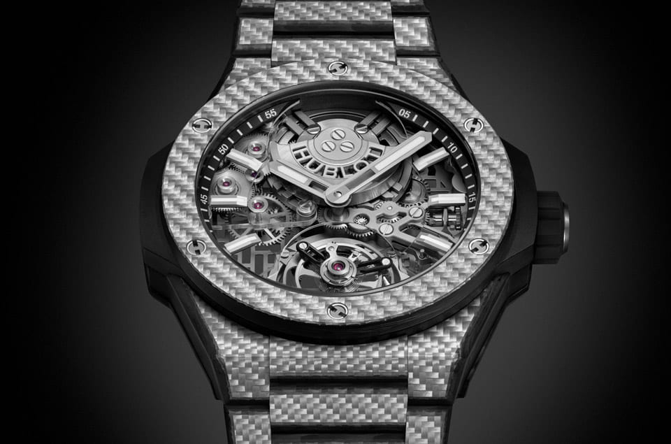 ▲擅長融入各種材質(zhì)制表的宇舶,2023年首度應(yīng)用鍍鋁碳纖維制成獨(dú)具品牌特色的Integrated一體式鏈帶。
