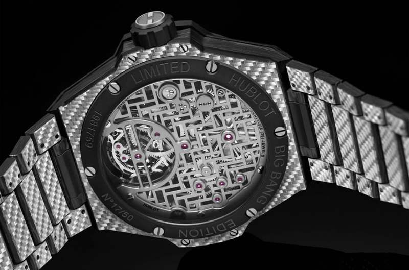 先前宇舶便曾運(yùn)用過鍍鋁碳纖維制作像是Big Bang Unico計時碼表、Big Bang Unico高爾夫球手表、Big Bang Meca-10動力儲存手表,甚至也包含與這次新款同功能、同機(jī)芯的Big Bang Tourbillon Automatic等等,鍍鋁碳纖維不僅搭配各式功能都很合拍,且其外觀顏色也并非只有銀灰色,經(jīng)過宇舶調(diào)整配方后,可以呈現(xiàn)藍(lán)色、綠色、黃色等等,顛覆我們對碳纖維材質(zhì)的既定印象。