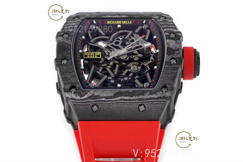整體腕表理查德RM35-02腕表直徑44x50mm毫米,表殼采用獨家研發的新型材料NTPT碳纖維特別材質,表帶材質為RM專用橡膠表帶,表扣為折疊扣,最高硬度的藍寶石水晶玻璃材料及雙面鍍藍膜處理。整體外觀更偏向于運動化,復雜化,同時做工細節非常到位!