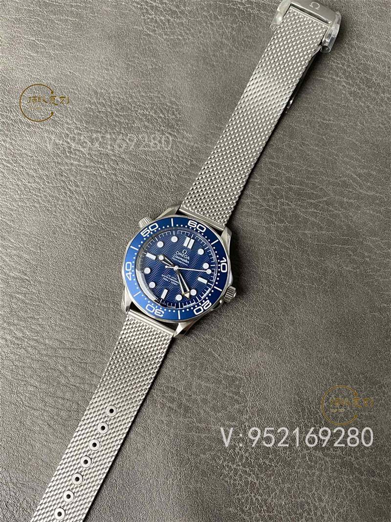 此次這款“邦德60周年”表帶方面則是可配金屬米蘭鏈(鋼鏈)或者帆布帶,當然此次VS廠暫時只有米蘭帶,對于表帶來說自從2019年,歐米茄海馬300米“007無暇赴死”開始,米蘭鏈和帆布帶,開始進入到海馬300米系列當中。特別是金屬米蘭鏈,和海馬300米表頭的組合,在增強復古風格的同時,已經成為了歐米茄海馬300米特殊款的一大特征,識別度很高,對于細節方面的處理也是很為到位!