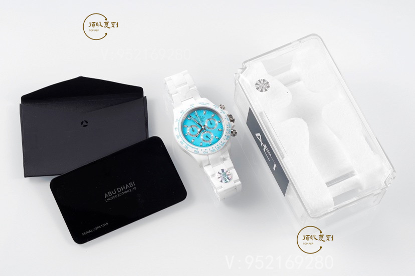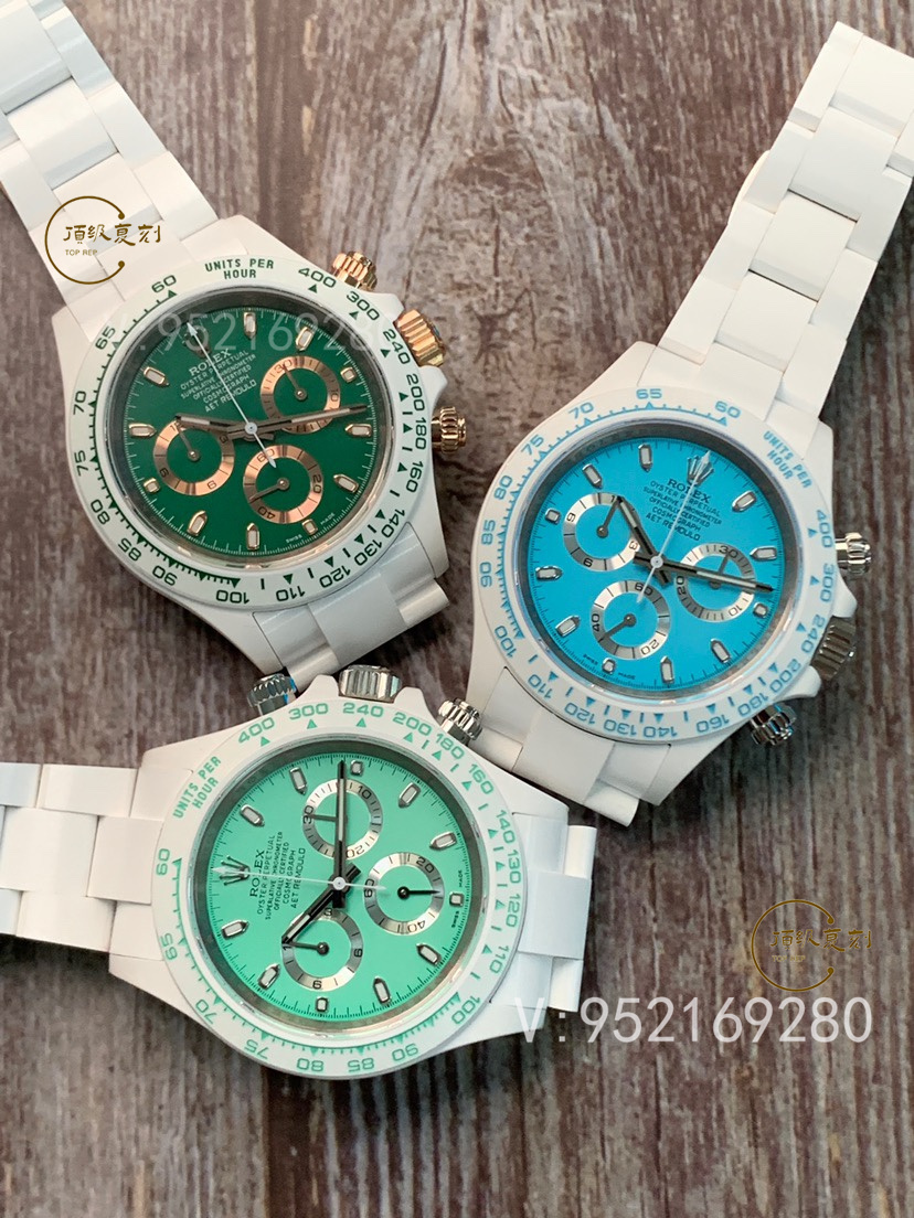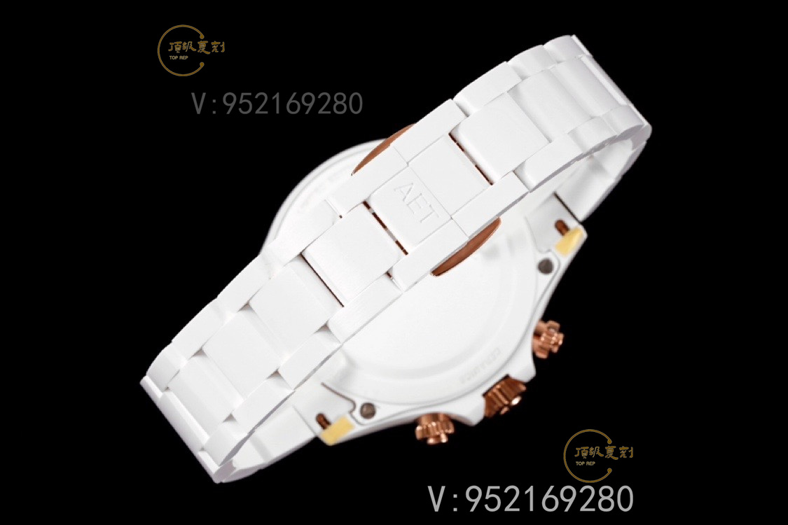 大家好,我是zs小編,今天給大家介紹一款改裝勞力士迪通拿產品,是AET廠近期推出的白色陶瓷迪通拿,內部搭載的同N廠一樣的丹東4130機芯,這款機芯在N廠被查以后也算是半放開了,很多工廠都能拿到。AET廠也是一個新工廠了,這次的迪通拿外觀做的非常精致,陶瓷的表殼、表帶、扣,下面看看這款表做工評測吧!