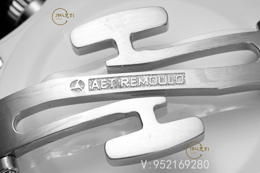 表帶采用的也是陶瓷材質,這個陶瓷并不是拋光的陶瓷,而是涉及到了拉絲的工藝,這款手表陶瓷的拋光力度還是很不錯的。這款表扣是一個按鈕,取消了原有的蠔式表扣,這個按扣則是有特殊風格,同時由于其特殊結構需要在后期使用時注意(如下圖),同時該表的表扣位置也是AET的印章,代表AET改裝出廠的!