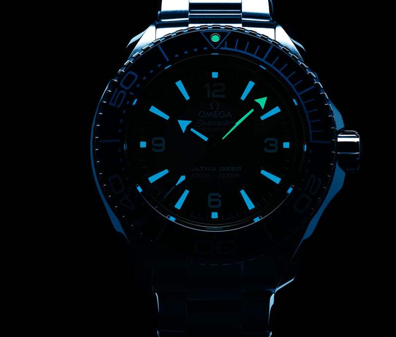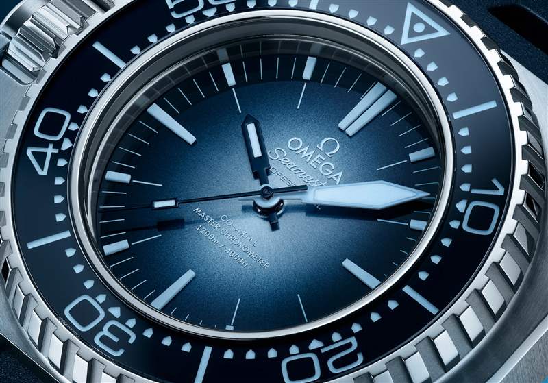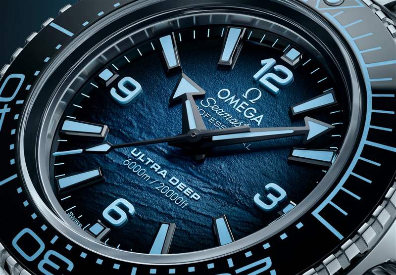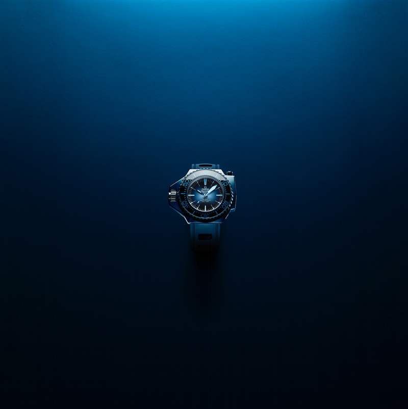 至于潛水表之最,當(dāng)然不少得2019年推出的海馬Ultra Deep,當(dāng)時創(chuàng)下了馬里亞納海溝深潛之世界紀錄,防水深度高達6,000米。是次新系列的45.5mm腕表,表殼及表鏈皆以O(shè)-MEGASTEEL材質(zhì)打造,吸睛的設(shè)計有表面上的馬里亞納海溝挑戰(zhàn)者深淵圖案,以彰顯其獨特性,亮漆表面可以突顯出海洋的層次感,放于UV光源之下則會顯現(xiàn)「OMEGA WAS HERE」的字樣,采用的機芯與「Ploprof」同樣是品牌8912 Co-Axial Master Chronometer機芯。最后,雖然海馬系列向來是技術(shù)與工藝的頂級表現(xiàn),但是次的新系列既加強了整個系列的獨有元素,亦開創(chuàng)了一系列嶄新的海洋美學(xué),表面以藍色為主調(diào),并且會視乎設(shè)計所需逐層涂漆,以營造出流動效果圖案,除此之外還特意推出一系列配飾,相信無論是海洋愛好者還是潛水表迷都會對此愛不釋手。