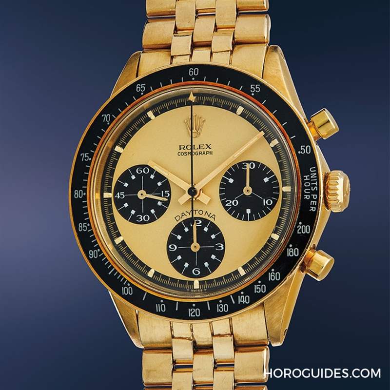 首次出現(xiàn)在拍場(chǎng)的Rolex Paul Newman Daytona Lemon型號(hào)6264 于此場(chǎng)拍賣以逾200萬美元成交,遠(yuǎn)超拍前估價(jià),是此場(chǎng)拍賣的第二高成交價(jià)拍品。這只表在1969年生產(chǎn)以來就被墨西哥家族El Limoncito納入收藏,也因此得名「El Limoncito」。表鏈印有「Hecho in Mexico」字樣。被稱為「Lemon」的綠黃色表盤、黑色副表盤加上白色時(shí)標(biāo)的配置,是Cosmograph Daytona Paul Newman罕有的設(shè)計(jì)。