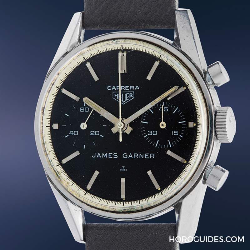 編號(hào)24拍品是美國影星James Garner的時(shí)計(jì)珍--一只約1966年制的Tag Heuer Carrera腕表型號(hào)2447,這只表徑35mm、精鋼材質(zhì)的計(jì)時(shí)碼表,被命名為「Carrera James Garner」,表盤上除了有標(biāo)示有品牌識(shí)別Heuer Carrera,六點(diǎn)鐘位置亦注記有「James Garner」字樣。曾入圍奧斯卡金像獎(jiǎng)的的James Garner不只演過賽車手,現(xiàn)實(shí)生活中他本人也真的熱愛賽車,他的女兒Gigi Garner回憶說,他經(jīng)常戴著這只表去駕駛賽車,這是「他最喜愛的日常配戴表」。此拍品由Tag Heuer博物館以17.6萬美元拍得。
