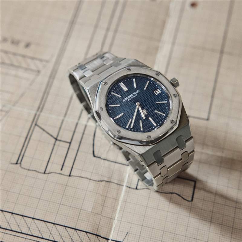 藍面皇家橡樹Jumbo超薄二針的型號目前為16202ST.OO.1240ST.02,但其實2022年時型號還是16202ST.OO.1240ST.01,差在尾數的「1」跟「2」代表了兩種型號的自動盤不同,16202ST.OO.1240ST.01的自動盤屬于皇家橡樹50周年的特別式樣,至于16202ST.OO.1240ST.02的自動盤則是改回與一般皇家橡樹系列一致的設計。