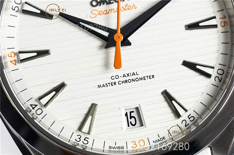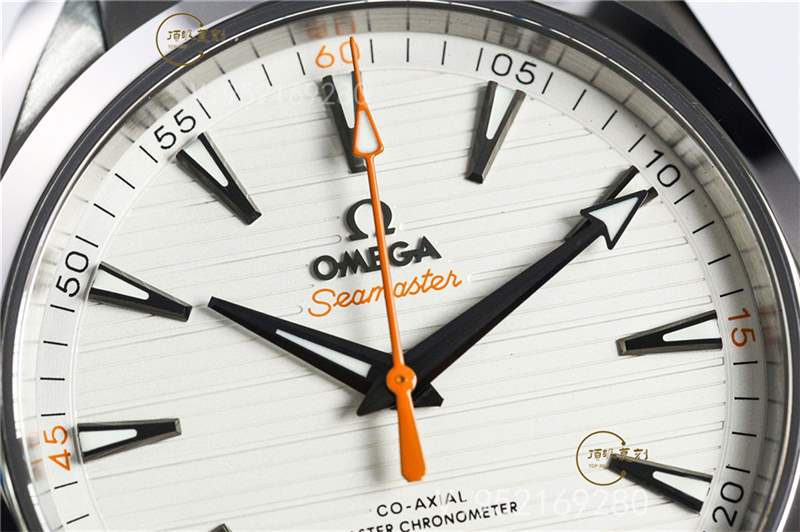VS廠歐米茄海馬Aqua150復(fù)刻版白面橙色秒針,相比金針隊(duì)長(zhǎng)沒(méi)有那么豐富的色彩元素,屬于“悶騷”類型的。腕表采用的簡(jiǎn)約柚木表盤,柚木的設(shè)計(jì)理念是歐米茄在2008年引入于Aqua Terra腕表中,這也成為Aqua Terra腕表的標(biāo)志性特征之一,最直接體現(xiàn)在盤面水平的紋理,人們第一眼看到它,很容易聯(lián)想到游艇木質(zhì)甲板的奢華質(zhì)感。簡(jiǎn)單的大三針與三角形小時(shí)刻度的設(shè)計(jì),也是為了致敬早期歐米茄腕表的設(shè)計(jì)風(fēng)格。
