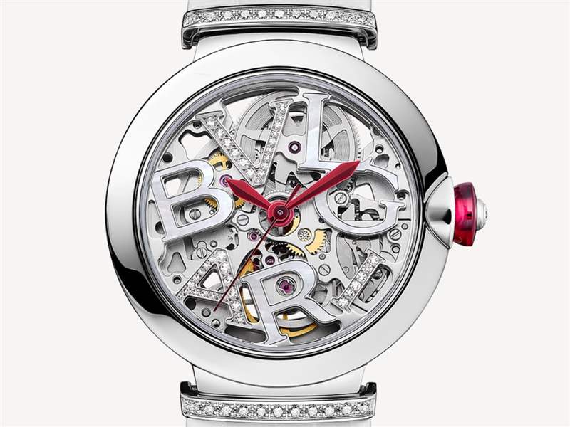 33mm精鋼表殼經過鏡面拋光處理,兩端表耳各鑲嵌一排鉆石。搭載 BVL 191 自動上鏈機芯,擺頻28800vph,動力儲備42小時。