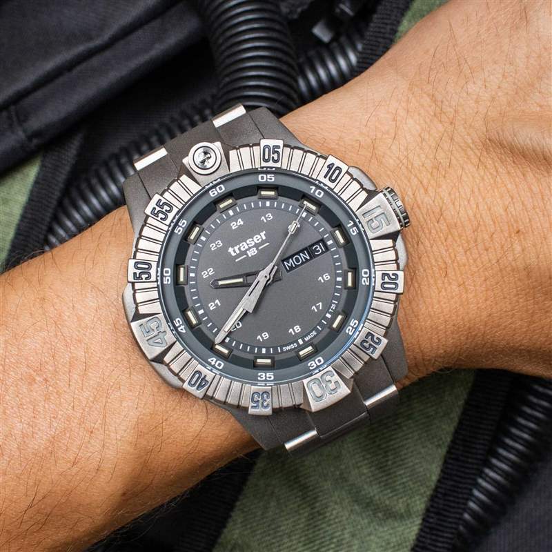 與 Traser 對 P99 Tactical 標準版(其表殼由碳纖維增強聚合物制成)的收費相比,鈦金屬的額外溢價相當合理,配備表帶的型號起價為 740 美元,而 Traser P99 T Tactical 搭配全鈦金屬手鏈,官方零售價為890 美元。帶有全鈦夜光氚管顯示屏的瑞士制造手表的選擇已經(jīng)相當有限,如果您想要一款配有配套鈦金屬表鏈的手表,選擇的數(shù)量還會進一步減少。在這個價位上,許多精彩的時計也在預算之內(nèi),盡管 Traser P99 T Tactical 不一定是針對那些只想要一個像樣的日常計時伴侶的人,而是針對那些專門尋找一個像樣的日常計時伴侶的人。一款大型、堅固且高度實用的工具表的優(yōu)質(zhì)執(zhí)行。