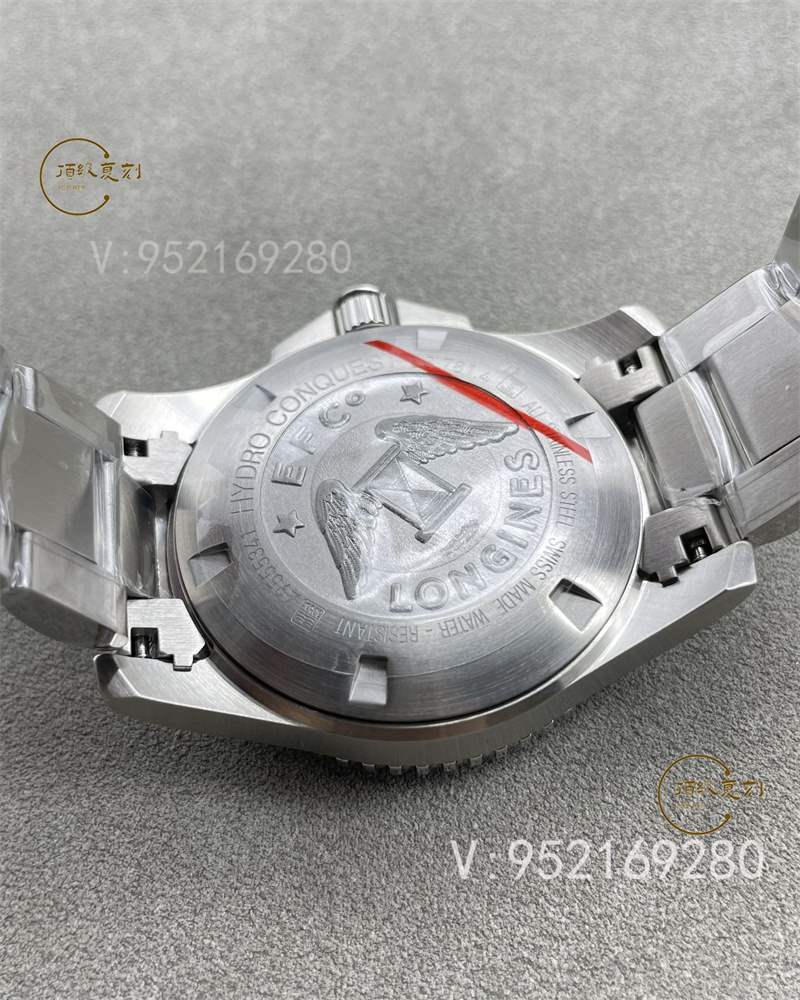 ZF廠浪琴康卡斯尺寸是41mm,顏色上配色上都是不錯的,熱度比較高的是黑色,藍色,綠色。ZF廠采用正品表圈相同的陶瓷材質來制作表圈,這種材料不僅穩定堅固,而且耐磨耐腐蝕。藍寶石水晶玻璃鏡面鍍有雙層透明防眩防反射涂層,使玻璃透明。它完美無瑕且清晰。ZF廠表盤細節刻度線的粗細比較接近正品。在比較的情況下,差距不容易發現;刻度線之間還鑲嵌有夜光時標。不銹鋼時標經拋光處理后具有強烈的金屬光澤。液光填充按時間刻度均勻填充,工藝非常精致。12點和6點位置上方的英文非常正確,字體大小已經注意了。浪琴表標志非常逼真,立體感十足,看起起來和正品基本上沒明顯的區別。表把采用雙重保險設計,防水性能非常好,雖然不能像正品一樣潛水,不過洗個澡什么的還是可以的。機芯方面上面已經說了,不過對于這款密底手表來說不上儀器檢測是看不出來的,另外就是浪琴888.3原裝機芯還有一個特點,跳過了12點后分針可以返回到9點然后再跳到12點這樣輕松跳到下一天,而ZF廠浪琴康卡斯也是完美還原了這一點,十分值得點贊,這也是可以去辨別真假ZF廠康卡斯的!