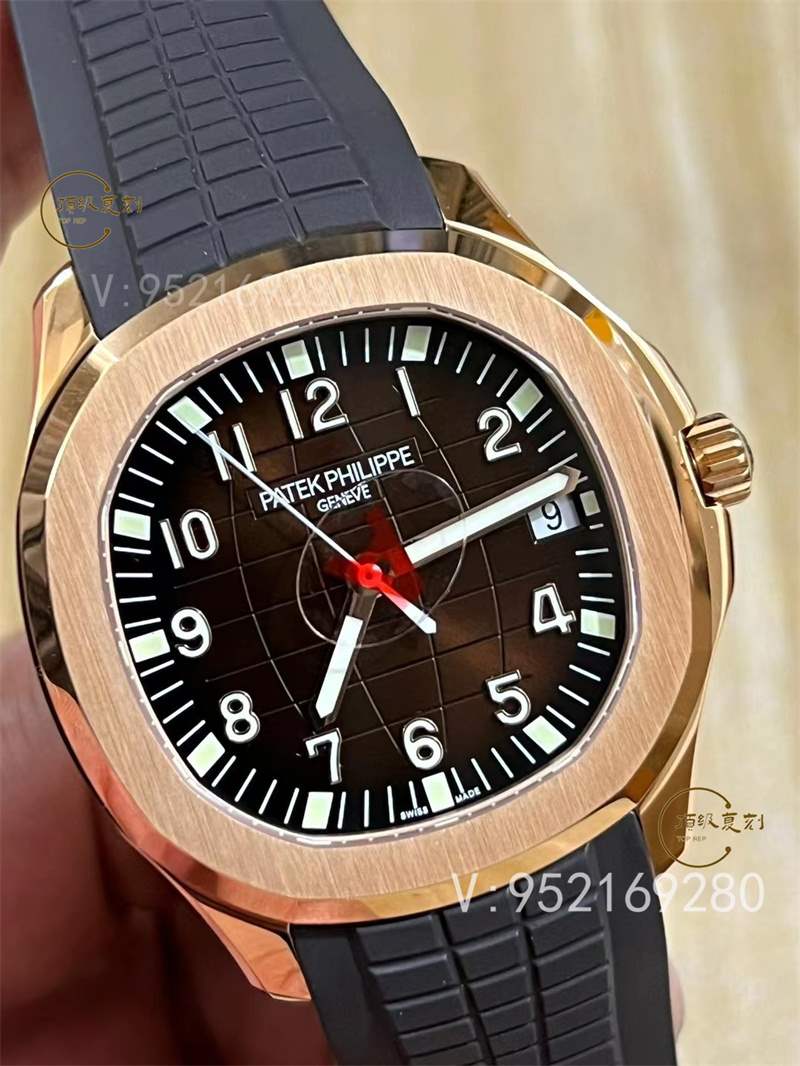 整表所使用到的材質(zhì)是904L精鋼材質(zhì),后續(xù)3K廠百達(dá)翡麗使用了PVD電鍍玫瑰金色值,達(dá)到與原版一致的玫瑰金.鍍金的工藝現(xiàn)在非常成熟,并非是之前的水鍍工藝.并且PVD電鍍是能夠保證三年不掉色,不氧化的.所以可以看到整個(gè)40mm尺寸的表殼表面呈現(xiàn)拉絲,切割面的邊緣做到了拋光工藝,形成了兩種工藝的對(duì)比.右邊的調(diào)節(jié)把頭,是調(diào)教時(shí)間日歷功能,搭載30SC機(jī)芯是完全同步正品的調(diào)教功能.3K廠PP精鋼多次測(cè)試之后,把頭的調(diào)教檔位順暢度,使得升級(jí)版本的手雷上鏈和調(diào)教都是頂級(jí)反應(yīng).