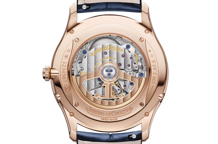 表背的透明底蓋露出積家打造的925自動機芯,佩戴者可以一窺18K玫瑰金鏤空自動盤,包括自動盤與其他機芯零件都經過品牌進一步修飾,如日內瓦波紋、魚鱗紋以及倒角拋光等等,機芯能累積輸出70小時動能,以其具備的進階功能而言屬于較長效型的手表,雅致風格中也顧及了日常佩戴的便利性。