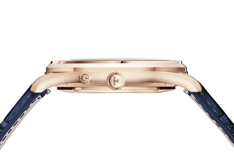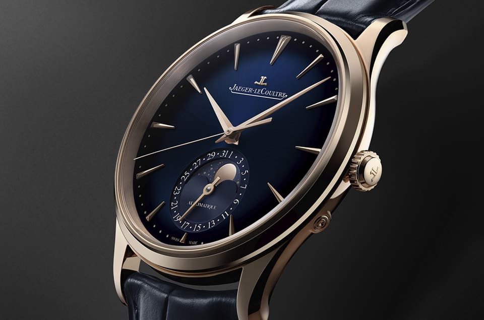 ▲積家Master Ultra Thin Moon 2023年改采玫瑰金表殼,搭配藍色調詮釋紳士品格。