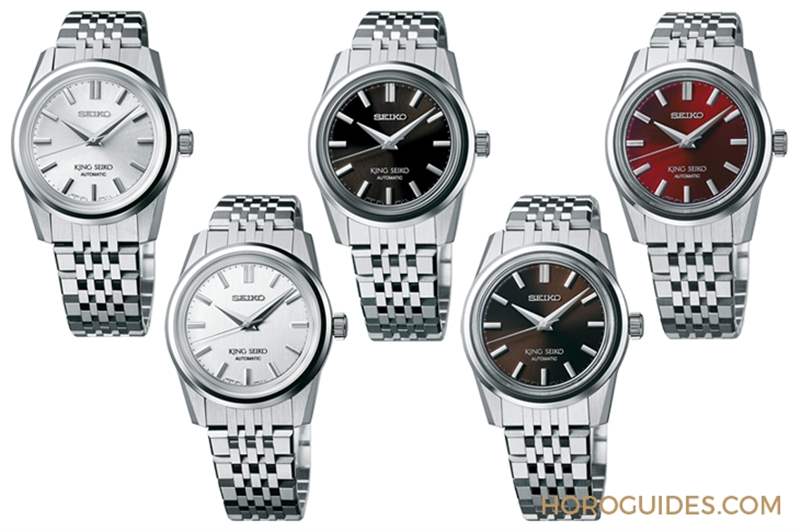 此次King Seiko系列新表款包含五種款式,每款都采用了不同的面盤顏色,其中一款為1965年原版「KSK」的銀白色,另外四款則分別為淺灰、炭灰、褐色及紅色。五色中的淺灰款式面盤以發(fā)絲紋處理,其他款則是以標(biāo)準(zhǔn)的太陽放射紋為設(shè)計,兩種紋路同樣為Seiko的經(jīng)典手法,都賦予了腕表特別溫暖和具有深度的生命力。
