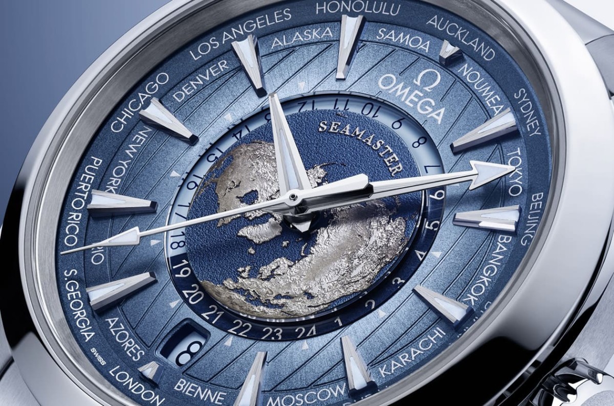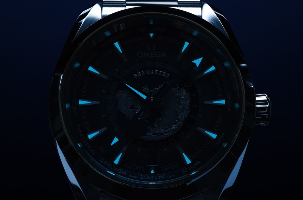 ▲Aqua Terra Worldtimer由面盤與夜光物料顏色、底蓋鐫刻的圖案等融入呼應(yīng)海馬歷史淵源的巧思,向系列的悠久歷史致敬。