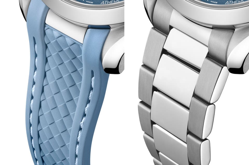 ▲夏日藍(lán)色海馬系列Aqua Terra Worldtimer既有搭配淺藍(lán)色橡膠表帶的款式,亦有搭配拋光/磨砂處理不銹鋼鏈帶兩種款式。