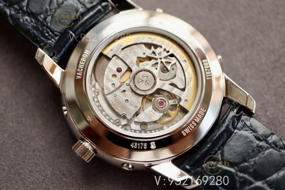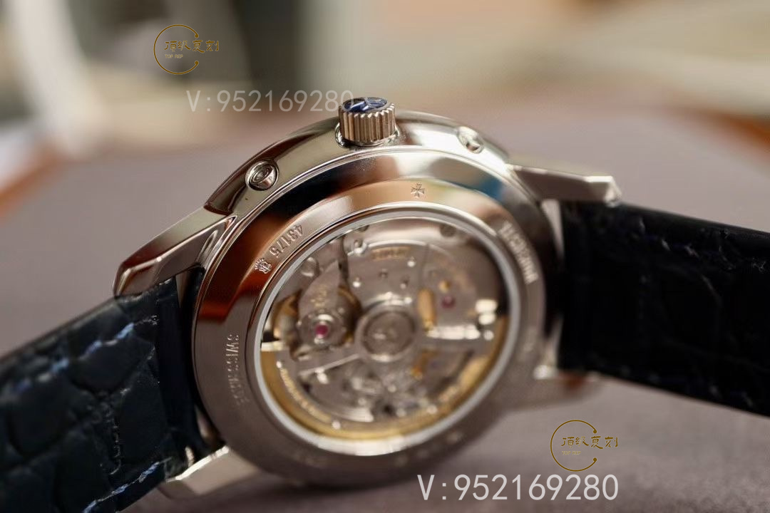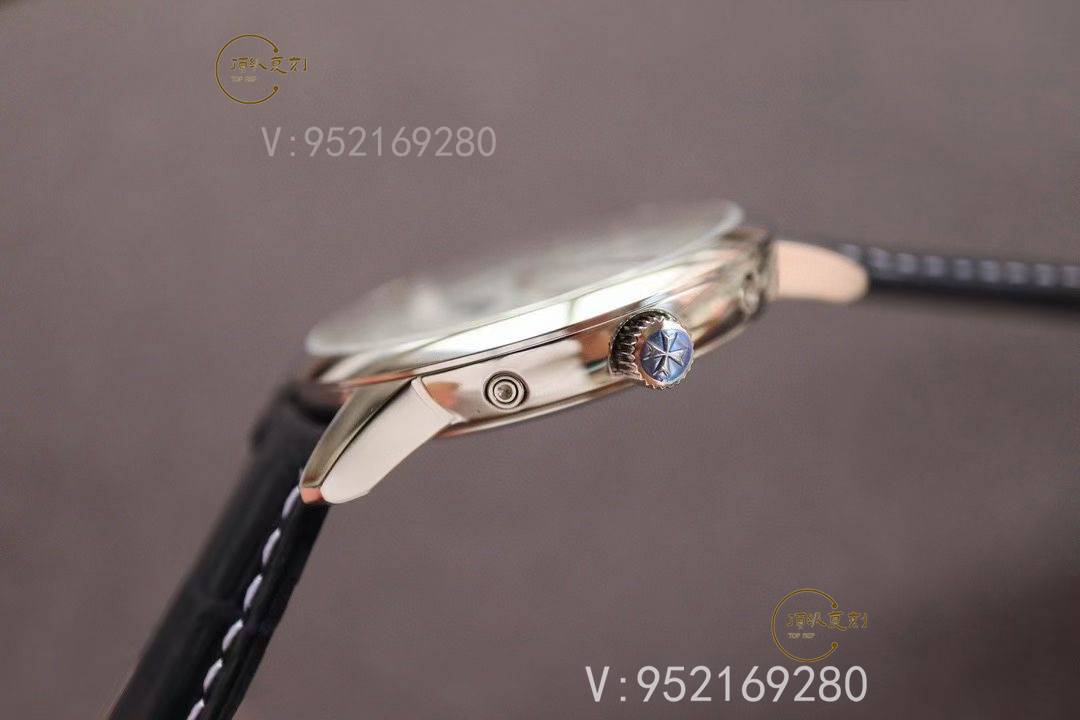 【表殼】:腕表直徑41mm,厚度9.4mm,僅僅與正品厚度相差0.03cm,為全網最薄版本。腕表線條簡潔、輪廓圓滑,秉承傳承系列一貫的纖薄與優雅,是在追求極致纖薄時計工藝道路上的“里程碑”式的優秀成果。