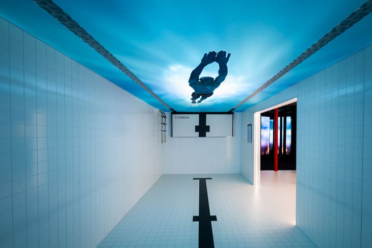 特別設(shè)置的游泳池房間,通過真實的水下效果和精心設(shè)計的影片,展示了歐米茄如何將精準(zhǔn)數(shù)據(jù)應(yīng)用于游泳項目,輔助裁判和大會做出公正的判決。