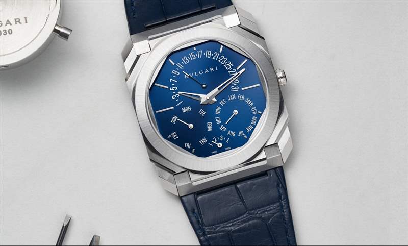 有史以來最薄的萬年歷腕表!表徑40mm、表殼厚度5.8mm,BVLGARI Octo Finissimo Perpetual Calendar超薄萬年歷腕表以一種近乎不可思議的平面化面貌,又一次將Octo Finissimo系列推上技術(shù)巔峰,成為此系列自2014年面世以來第7度打破超薄世界紀(jì)錄的強(qiáng)勢之作。